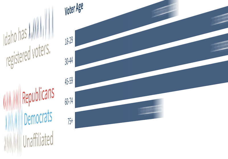 Learn more about Idaho鈥檚 voting patterns, historical trends, and demographic information with the interactive charts, graphs, and maps. Whether you are a researcher, journalist, policymaker, or an engaged citizen, you can find engaging and dynamic data that breaks down Idaho鈥檚 political landscape.